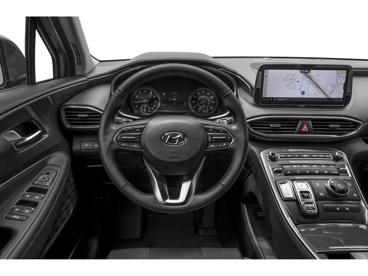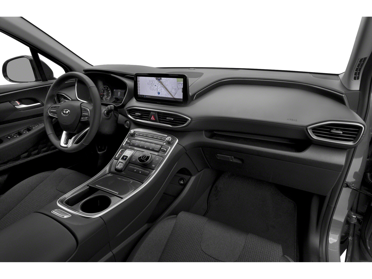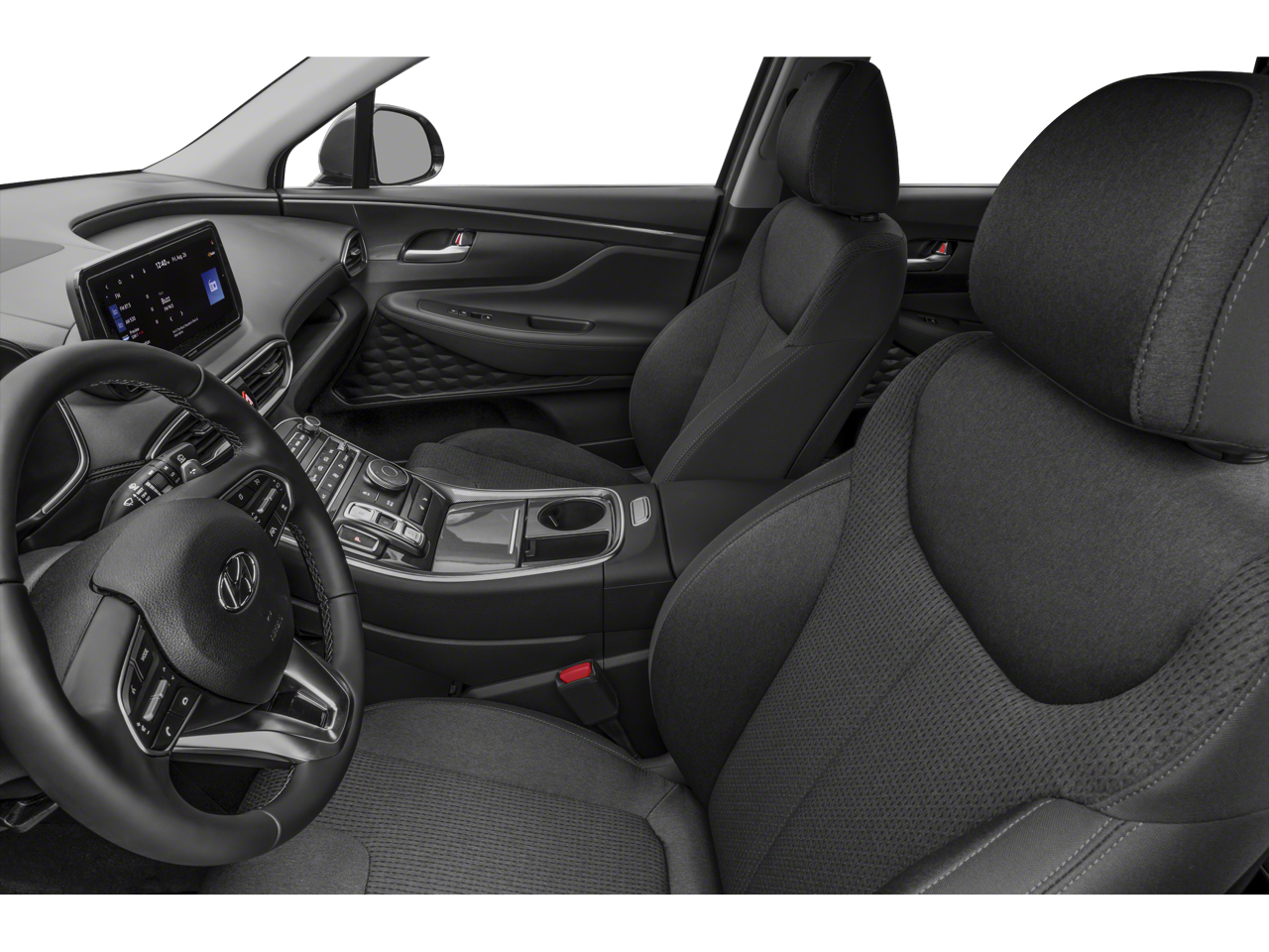 The interior of the Santa Fe SEL is designed with your comfort and convenience in mind. Enjoy the convenience of dual-zone automatic climate control, a power driver's seat, and a leather-wrapped steering wheel, all of which contribute to a premium driving experience. The 6-speaker audio system, complete with SiriusXM radio and a display audio interface, ensures you can enjoy your favorite tunes on the go.